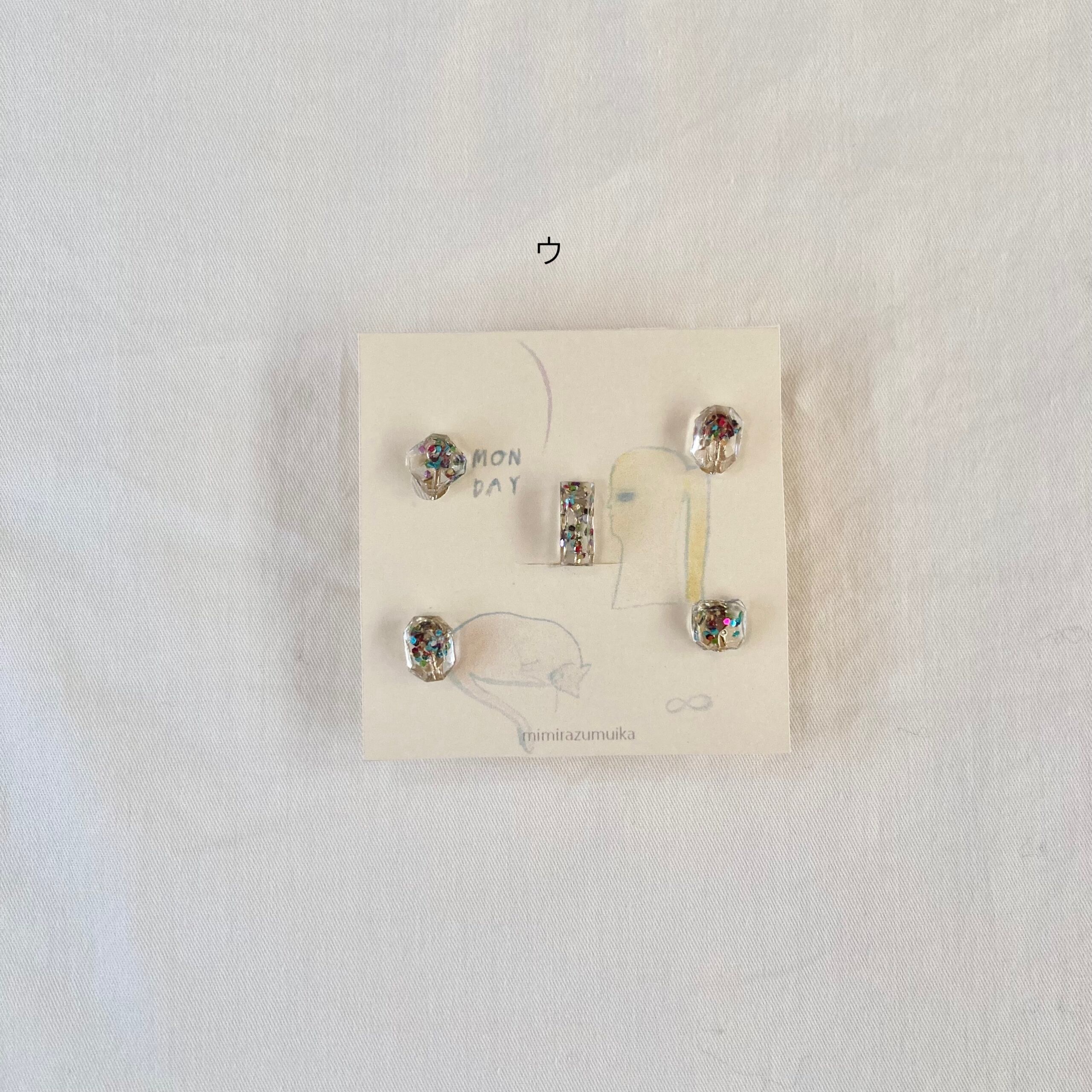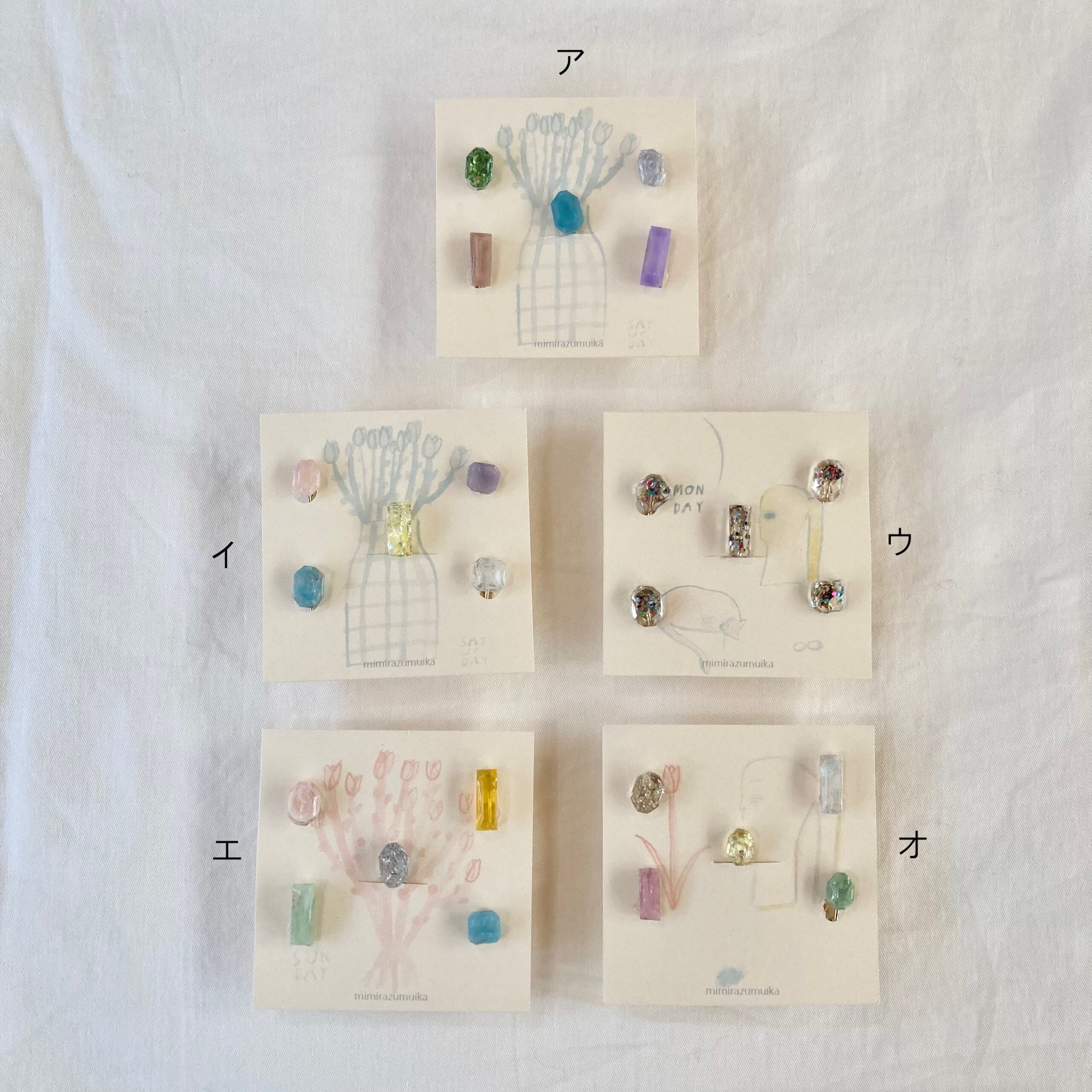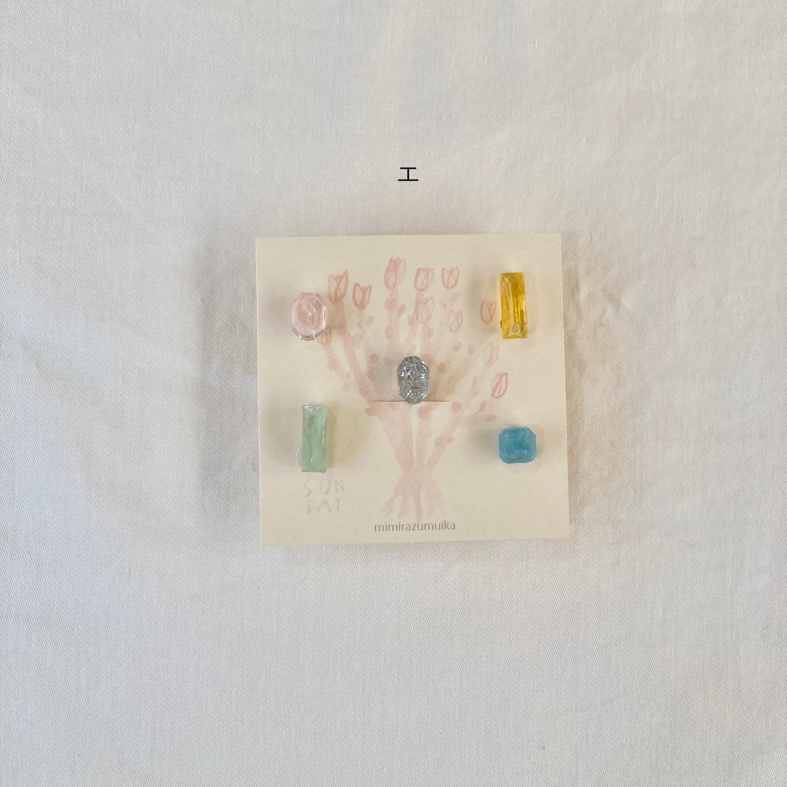 カケラ5つのイヤリングセットです size : 8mm~15mmのカケラ 樹脂、真鍮(メッキ加工)