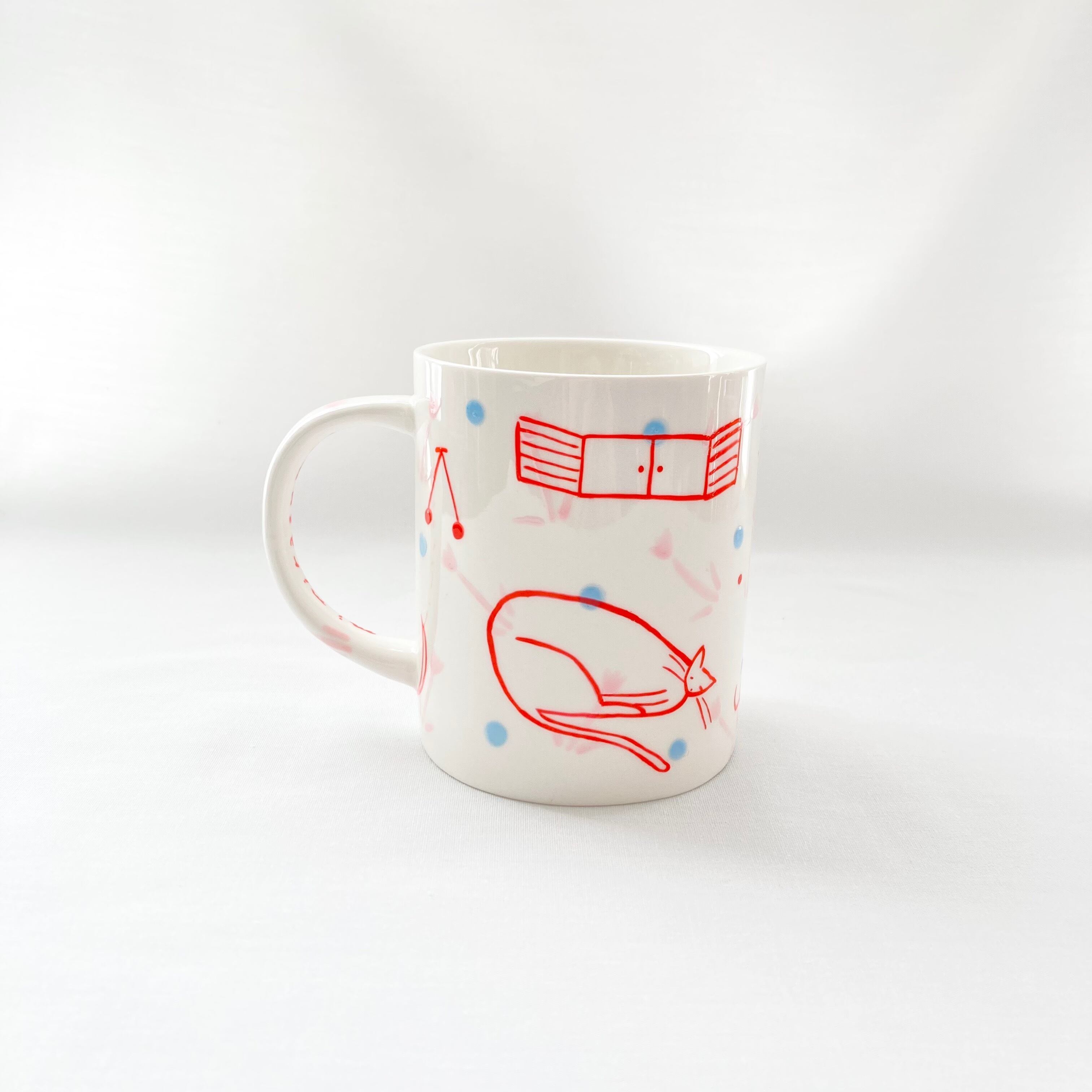 ピンクと赤と水色のマグカップ